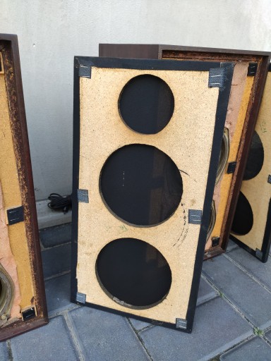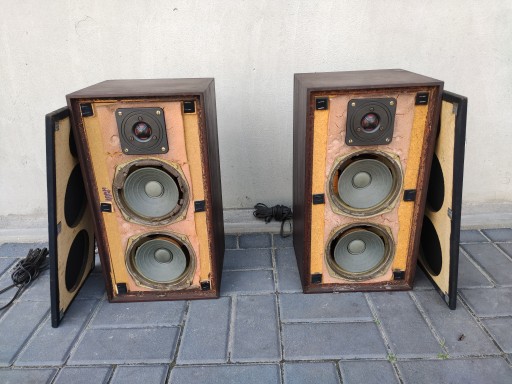posiadam na sprzedaż kolumny UNITRA Tonsil ZG 25 C. Stan wizualny widoczny na zdjęciach powyżej. Obudowy są w stanie bardzo dobrym. Kolumny idealnie nadają się do regeneracji (pianki). Sprzedaje wraz z maskownicami, które są w stanie dobrym (prócz braku znaczka UNITRA na lewej kolumnie). Kolumny sprawne.