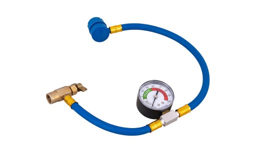 Przewód z manometrem jest niezbędny do uzupełnienia systemu klimatyzacji. Po podłączeniu do zaworu niskiego ciśnienia uzyskamy na manometrze odczyt pomiaru ciśnienia. Jest wielorazowego użytku, dzięki czemu nie zaśmieca środowiska.
