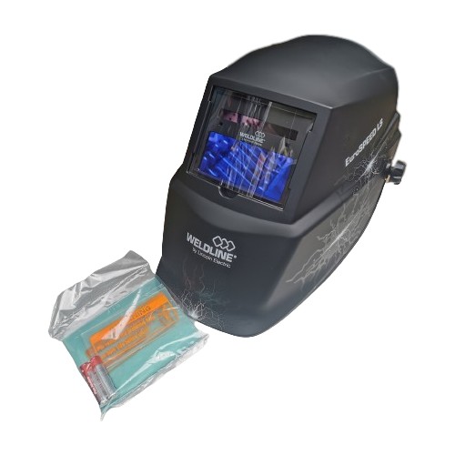 Przyłbica samościemniająca Weldline Eurospeed LS z filtrem optycznym w klasie 1/1/1/2. Wyposażona w dwa czujniki optyczne oraz wewnętrzny przełącznik trybu szlifowania. Zasilana promieniami słonecznymi oraz bateriami alkalicznymi AAA.