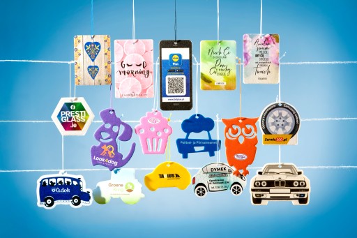 Jesteśmy producentem zapachów samochodowych. Posiadamy duże ilości zawieszek z grafiką klientów, które zostały po produkcji.