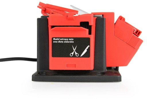 Ostrzałka składa się z bazy urządzenia, ostrzałki do noży i nożyczek, ostrzałki do dłut i przecinaków oraz ostrzałki do wierteł. Do pracy wystarczy założyć odpowiednią końcówkę, umieścić produkt w odpowiednim miejscu oraz postępować wg. instrukcji.