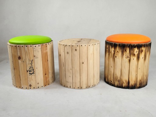 Posiadamy na sprzedaż szeroki wachlarz produktów ze szpuli i beczek dębowych, różnego rodzaju skrzynie: -zegary, lustra, stoliki, krzesła, hokery, stoliki, skrzynie wojskowe, beczki (200l, 225l, 500l) stojaki na butelki, ławy, świeczniki, deski na pokale