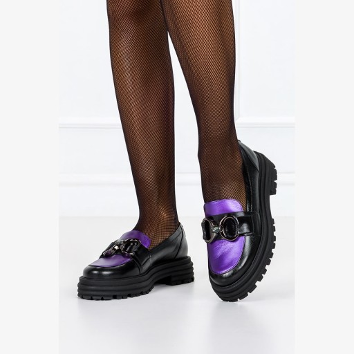 Czarne mokasyny damskie model 2692 zostały wyprodukowane w Polsce z najlepszych gatunków skór. Ręczne wykonanie butów gwarantuje doskonałą jakość, wygodę i dopasowanie do stopy. Wnętrze obuwia zostało wytworzone z wysokiej jakości skóry, która zapewnia maksymalny komfort użytkowania.To eleganckie i stylowe obuwie, które przyciąga uwagę luksusowym akcentem, emanując klasą i wyrafinowaniem. Cholewka mokasynów została zaprojektowana w taki sposób, aby przypominać tradycyjny fason tego typu obuwia. Starannie wkomponowna w czarną skórę stawka w fioletowym kolorze tworzy harmonijną i elegancką całość dodając luksusowego akcentu. Ponadto ozdoba z kryształkiem dodaje mokasynom wyjątkowego blasku i uroku. Delikatnie wyprofilowana wkładka zapewnia odpowiednie podparcie stopy i amortyzację, co sprawia, że są one idealnym wyborem zarówno na długie spacery, jak i na specjalne okazje. Wśród kobiet popularnością cieszy się aktualnie obuwie z masywną, bieżnikowaną podeszwą, która dodaje kilku centymetrów do wrostu. Doskonale łączą w sobie klasykę i nowoczesność, stanowiąc wyjątkową ozdobę każdej stylizacji. Mogą być noszone zarówno z eleganckimi spodniami i koszulą, jak i z sukienką czy spódnicą, dodając każdej stylizacji niepowtarzalnego uroku i wyrafinowanego charakteru. Wybierz swojego faworyta na Casu, który powinien znaleźć się w Twojej garderobie.