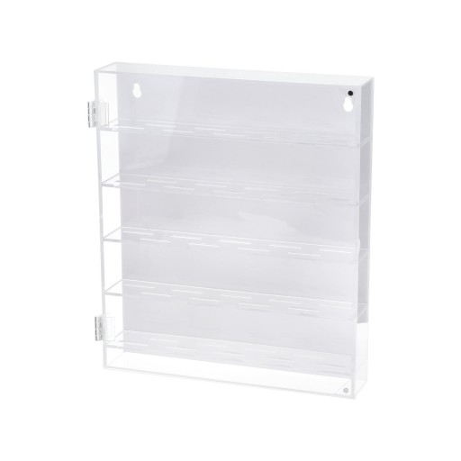 Akrylowy pojemnik do przechowywania, stojak, pyłoszczelny, przezroczysty z drzwiczkami w kolorze białym
