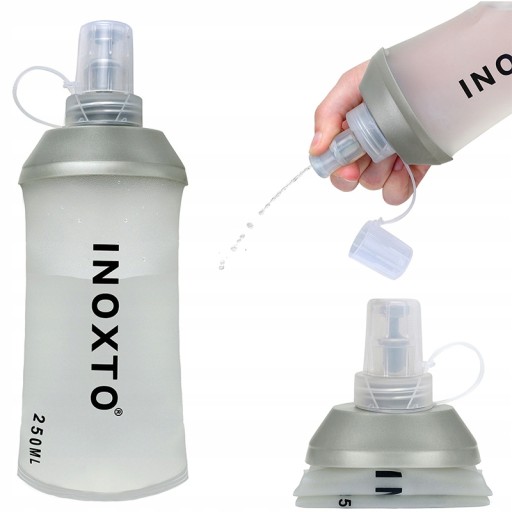 - Materiał: korpus butelki PEVA, silikonowy otwór na butelkę