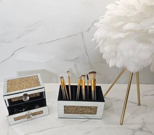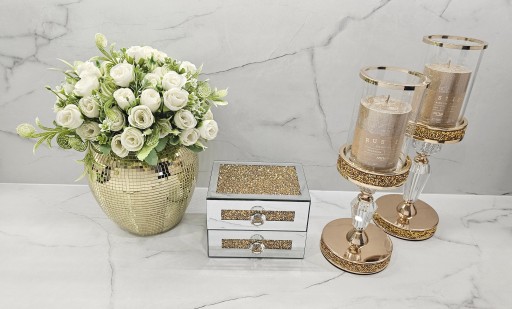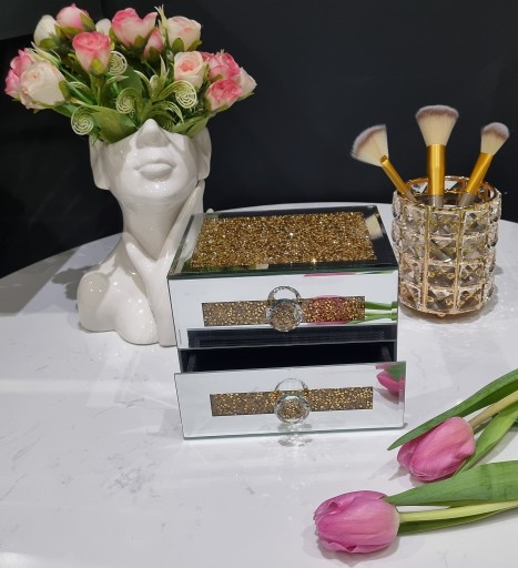 Idealne pudełko na biżuterię lub inne drobiazgi, świetnie sprawdzi się jako dekoracja we wnętrzach w stylu GLAMOUR. Środek pudełeczka jest welurowy.