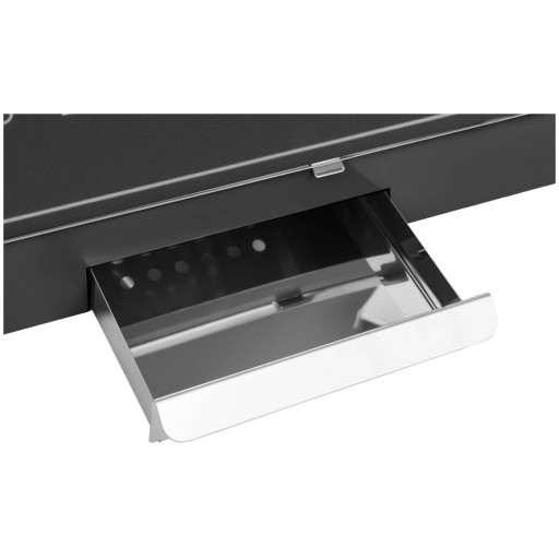 Wysuwana szuflada ze stali szlachetnej, na spodzie opisywanego urządzenia gastronomicznego Royal Catering, znacznie upraszcza czyszczenie. Trafiają tam okruchy, nieuprażone ziarna oraz łupiny. Po skończonej pracy wystarczy ją wyciągnąć i opróżnić.