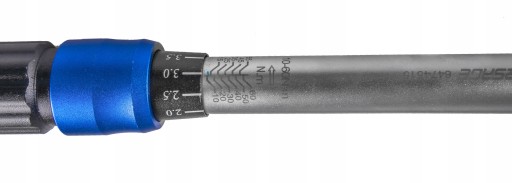 Wygodna rękojeść posiada skalę momentów obrotowych, która może być regulowana poprzez przekręcenie końcówki