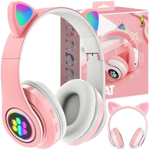 SŁUCHAWKI BEZPRZEWODOWE DLA DZIECI KOCIE USZY RGB