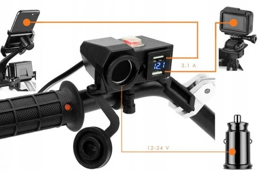 ⚠️Motocyklowe gniazdo 2 x USB + gniazdo zapalniczki 3.1 A MUS06