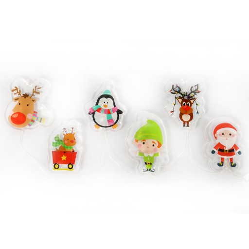 FIGURKI BOŻONARODZENIOWE W POSTACI 6 ŻELOWYCH NAKLEJEK Z LED Naklejki żelowe to wspaniały pomysł na świąteczne dekoracje, które można umieścić na oknie, drzwiach, meblach lub dowolnych gładkich powierzchniach. Dają możliwość kreatywnego tworzenia własnych kompozycji, wspaniałą zabawę dla dzieci i dorosłych. Piękna i delikatna dekoracja, wprowadzająca ciepły i niepowtarzalny klimat w każdym domu. Bez kleju, bezpieczne dla dzieci, wysoka jakość wykonmania