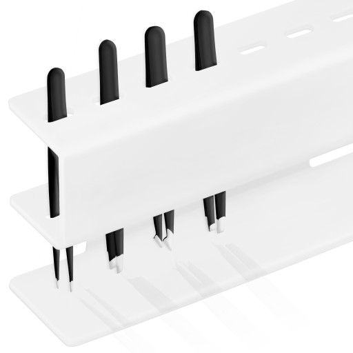 Ten stojak posiada 8 otworów na pęsety, więc każda pęseta znajdzie swoje miejsce. Dwuwarstwowa konstrukcja pozwala na szczelne przechowywanie , aby zapobiec uszkodzeniom.
