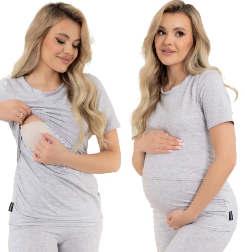 Bluzka Emma to ideał w swej prostocie! Mamy, które cenią wygodę i komfort pokochają ją, ponieważ świetnie sprawdzi się jako baza do codziennych i wieczorowych stylizacji. Doskonała na czas ciąży jak i po rozwiązaniu. Emma posiada krótki rękawek, klasyczny okrągły dekolt. Pod biustem posiada opcję karmienia w formie zakładki odchylanej do góry. Takie rozwiązanie jest ułatwieniem dla mam, ponieważ umożliwia dyskretne i komfortowe nakarmienie maluszka bez konieczności odkrywania całego ciała. Bluzeczka jest nieco dłuższa dzięki czemu możesz mieć pewność, że przykryje cały brzuszek. Miły i przyjemny w dotyku materiał idealnie dopasuje się do Twojej sylwetki a marszczenia po bokach wyeksponuje ciążowy brzuszek. Nasze bluzki ciążowe wykonane są w 100% z bawełny, dlatego nie musisz się obawiać o swój komfort czy ewentualną reakcję alergiczną maluszka.