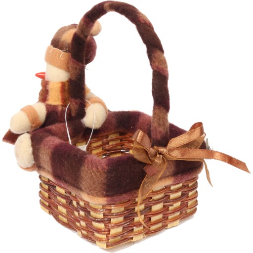 Koszyczek świąteczny, kwadratowy z bałwankiem pluszowym.