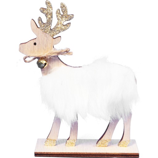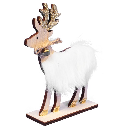 ДЕРЕВЯННАЯ ФИГУРКА ОЛЕНЯ С МЕХОВЫМ ОТДЕЛЕНИЕМ.