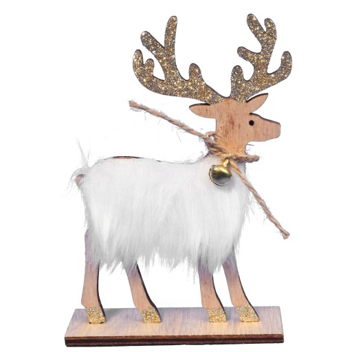 ДЕРЕВЯННАЯ ФИГУРКА ОЛЕНЯ С МЕХОМ II