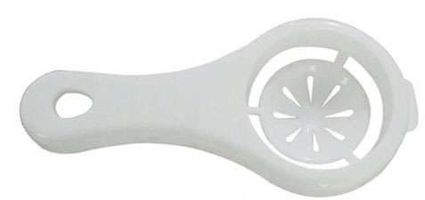 Mały pomocnik, który ułatwi oddzielenie żółtka od białka. Przydatny na przykład podczas przygotowywania polewy białkowej, pierogów Karlovy Vary, w przepisach na biszkopt tortowy, gdzie trzeba ubić śnieg lub przy robieniu buziek i laskonek.