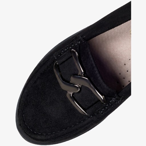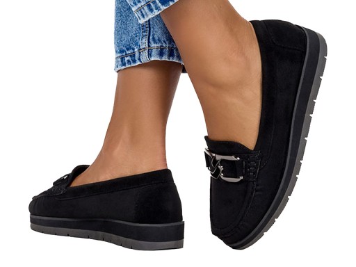 Czarne mokasyny damskie z łańcuchem model D23WX5-B zostały wykonane z wysokogatunkowego zamszu ekologicznego co gwarantuje doskonałą jakość, wygodę i dopasowanie do stopy. Dodatkowo, skórzana wkładka absorbuje wilgoć, odprowadzając ją z powierzchni stopy. Działa to jak naturalny system kontroli wilgoci, utrzymujący stopy suche nawet podczas intensywnego użytkowania butów. Mokasyny z łańcuchem to niezwykle eleganckie obuwie, które stanowi połączenie wygody i luksusu. Te wyjątkowe buty zostały stworzone dla osób, które pragną wyróżnić się i dodać blasku swojemu stylowi. Ich charakterystyczną cechą jest łańcuch umieszczony na cholewce, który dodaje mokasynom niezwykłego uroku i elegancji. Te wyjątkowe buty są idealne zarówno do codziennych, jak i bardziej formalnych okazji. Mogą być noszone z eleganckimi spodniami lub spódnicą, dodając całości szyku. Są doskonałym wyborem dla tych, którze chcą dodać odrobinę ekstrawagancji do swojej casualowej garderoby. Mokasyny z łańcuchem to obuwie, które przyciąga spojrzenia swoim wyjątkowym designem i błyszczącym akcentem. Na Casu znajdziesz wiele wzorów, które z pewnością dodadzą oryginalności Twoim stylizacjom.
