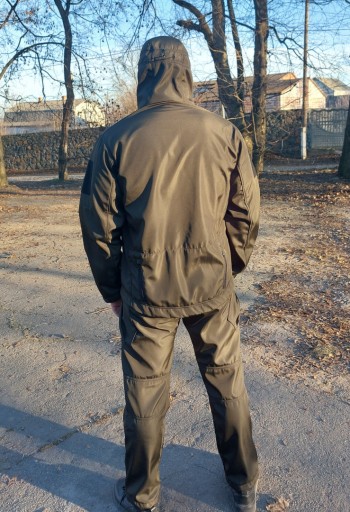 Komplet uszyty jest z materiału typu DEWSPO (Duspo) i ocieplony jest mikropolarem. Materiał Duspo charakteryzuje się wysoką gęstością, nie ulega szybkiemu zużyciu i jest odporny na różne uszkodzenia, nie blaknie na słońcu nawet po wielu praniach. Ponadto jest wodoodporny doskonale przy tym przepuszczając powietrze..