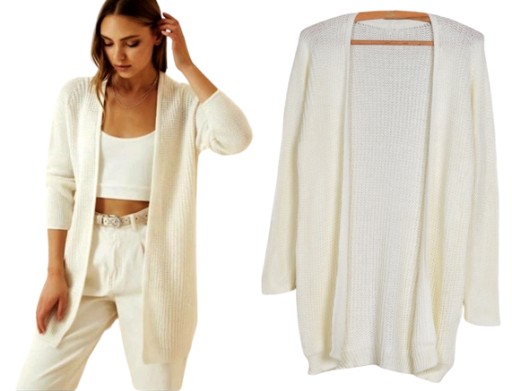 Wyjątkowy sweter/narzutka na chłodne dni , posiada długi rękaw, nie jest zapinany.