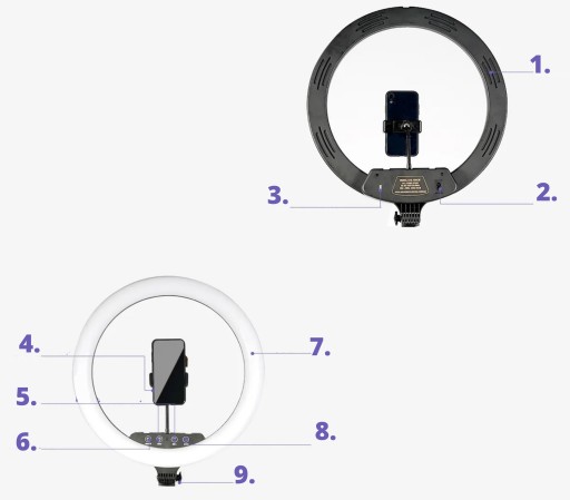✅ W centralnym miejscu lampy pierścieniowej można zamocować 3 uchwyty na telefon komórkowy, który są dołączone do zestawu.