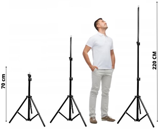 ✅ Wysokość statywu można regulować od 70 cm, aż do 220 cm.