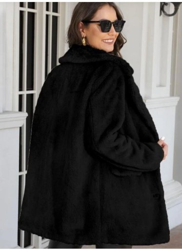 SZTUCZNE FUTRO DAMSKIE CZARNE NA GUZIKI L VBE