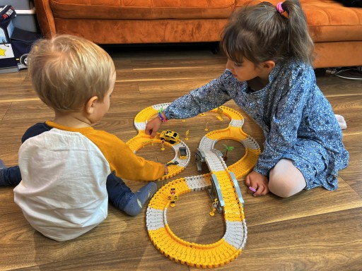 Zestaw zachęca do kreatywnego myślenia, ponieważ dzieci muszą wymyślać trasy, opowiadać historie związane z wyścigami i budową. Budujcie Wasze własne trasy, eksperymentujcie z ich konfiguracją, dodawajcie coraz to nowe zakręty, mosty i sygnalizacje drogowe.