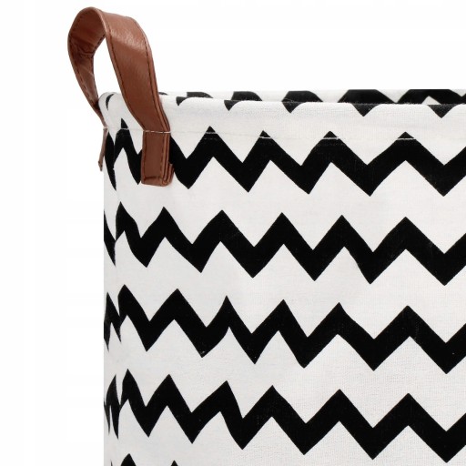 Gwarancją trwałości naszego produktu jest wodoodporna podszewka z polietylenu na wewnętrznej stronie kosza. Nie musisz obawiać się magazynowania w nim wilgotnych materiałów, np. świeżo wyciągniętej z pralki odzieży. Możesz też śmiało wycierać go na mokro. Usztywniany górny rant w owalnym kształcie nadaje koszowi stabilną konstrukcję, dzięki czemu produkt może przez długi czas stać w jednym miejscu, nawet wypełniony po brzegi różnymi przedmiotami.