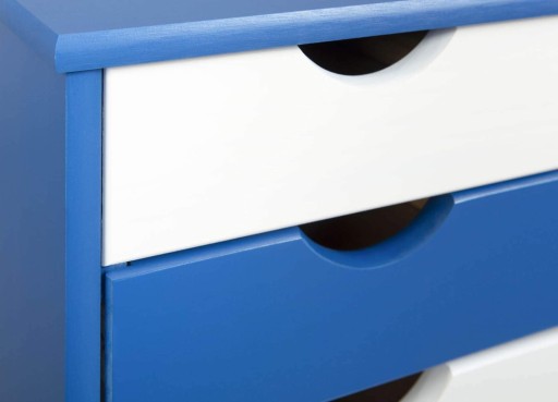 - Komoda z 6 szufladami, biała, niebieska, z litego drewna sosnowego