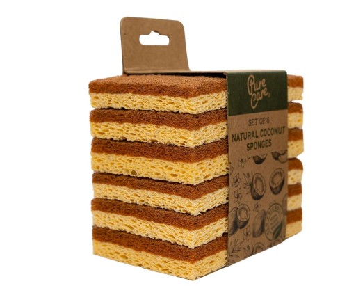 W odróżnieniu od tradycyjnych zmywaków do naczyń, wielofunkcyjne gąbki PureCare z włókna celulozowego i kokosowego, są wykonane z całkowicie naturalnych materiałów. Włókna kokosowe są pozyskiwane w sposób odpowiedzialny z łupin orzecha kokosowego.