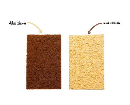 Jedna strona to miękka gąbka celulozowa, a druga to gąbka kokosowa. Doskonale nadają się do mycia naczyń, blatów, garnków, patelni i wielu innych powierzchni. Jest to niezbędny zakup dla każdego gospodarstwa domowego poszukującego ekologicznej, skutecznej alternatywy dla plastikowych gąbek.