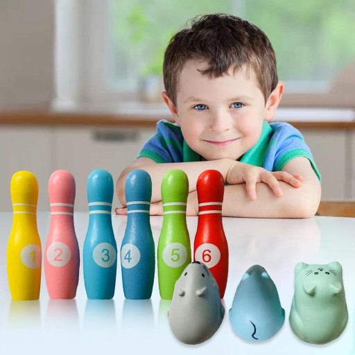 Wooden Bowling Set Preschool Learning Toy 6 Bowling Ball for Kids 3 4 5 6