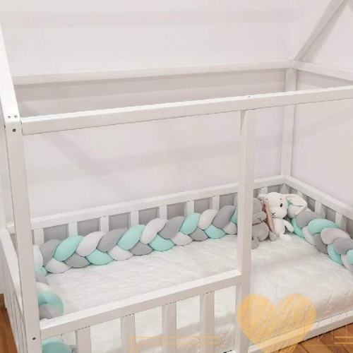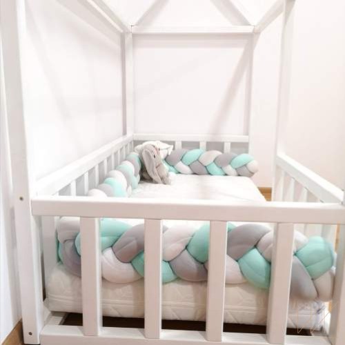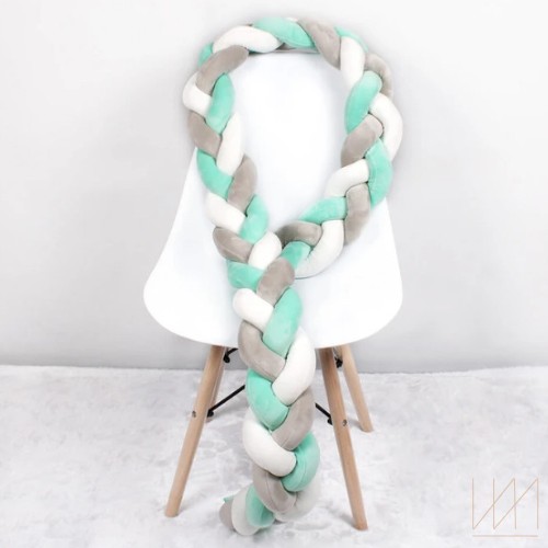 Wykonany z najwyższej jakości, certyfikowanego, miękkiego i delikatnego weluru. Wypełniony bezpieczną, antyalergiczną, certyfikowaną kulką silikonową. Do szycia użyto nici elastycznych, które zapewniają wysoką trwałość naszych produktów. Ochraniacz na końcach jest zszyty aby podczas prania i użytkowania nie rozplątał się. Do ochraniacza dołączone są tasiemki do przymocowania warkocza do łóżeczka. Produkty wykonywane są ręcznie, w Polsce, z materiałów przyjaznych dzieciom.