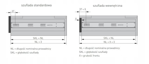 Ogłoszenie dotyczy kompletu prowadnic na jedną szufladę (L + R).