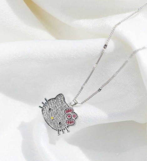 Śliczny Naszyjnik, Łańcuszek, Hello Kitty, Cyrkonie