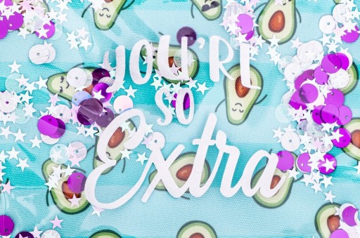 Jednokomorowa kosmetyczka Avocado wykonana z zielonego materiału w modny wzór avocado. Przód kosmetyczki posiada przeźroczystą nakładkę z kolorowym konfetti. Na kosmetyczce widnieje srebrny napis "You're so Extra". Kosmetyczka zamykana jest na suwak. Do suwaka przyczepiony jest zielony pompon. Wymiary kosmetyczki: 22 x 16 x 1 cm.