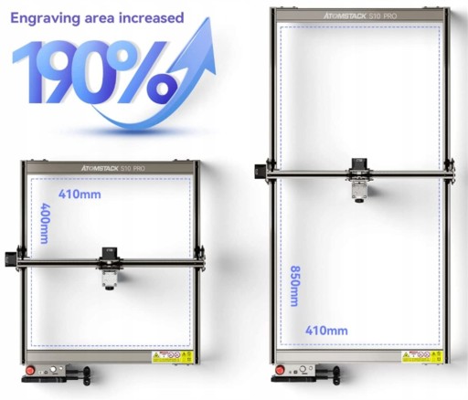 Modułowa konstrukcja mechanizmu kadłuba pozwala na uzyskanie super dużego obszaru grawerowania 410*850 mm po prostu przez wymianę elementów ramy. Ten projekt jest idealny dla profesjonalistów grawerowania laserowego, dostosowujących przedmioty o dużych rozmiarach.