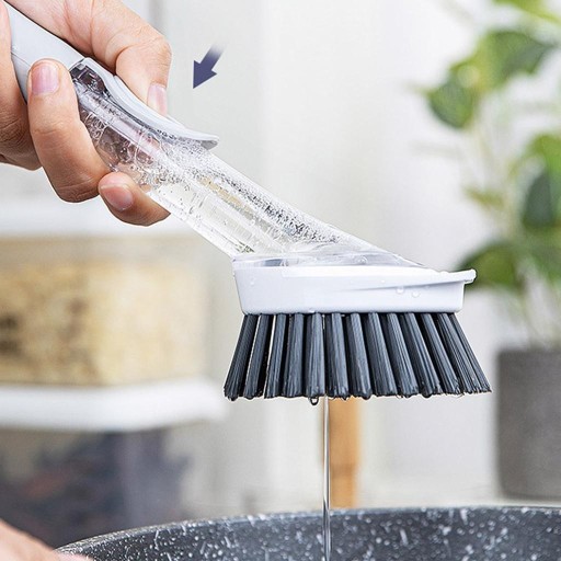 Po prostu naciśnij uchwyt, a płyn do mycia naczyń wypłynie przez główkę szczoteczki.
