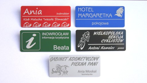 Do wyboru różne kolory tła oraz graweru wg poniższego wzornika. Wymiary identyfikatora 7 x 3 cm.