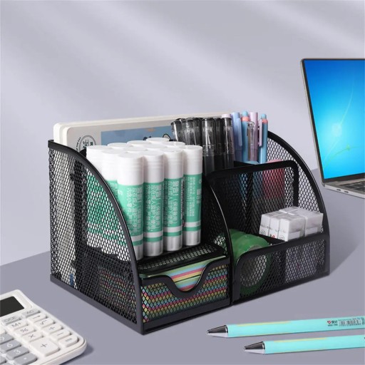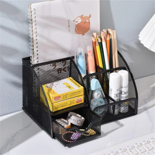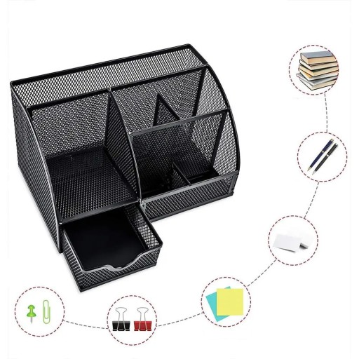 - FUNKCJONALNY - posiada aż 6 komór, dzięki czemu można łatwo segregować i organizować materiały biurowe, takie jak długopisy, wizytówki, zszywki czy kalkulatory.