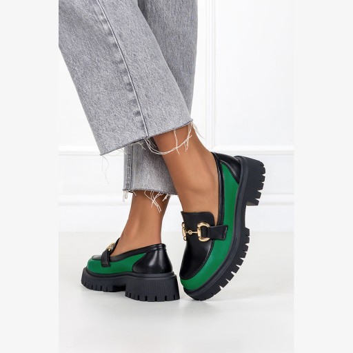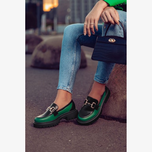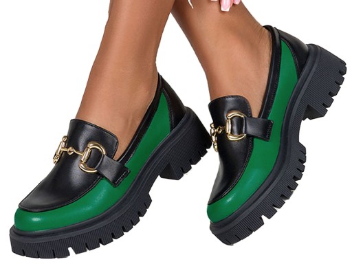Czarne mokasyny damskie model G23X2-B zostały wykonane z wysokogatunkowej skóry ekologicznej co gwarantuje doskonałą jakość, wygodę i dopasowanie do stopy. Te eleganckie buty są stworzone dla osób, które cenią sobie zarówno estetykę, jak i komfort. Ich głównym kolorem jest uniwersalna czerń, która sprawia, że pasują do wielu różnych stylizacji. Zielone wstawki umieszczone wokół mokasynów dodają obuwiu odrobiny świeżości i wyjątkowego charakteru, jednocześnie tworząc kontrast z głębokim odcieniem czerni. Na grzbiecie mokasynów znajduje się elegancka sprzączka. Dodaje ona nutkę elegancji i luksusu, podkreślając wyjątkowy charakter tych butów. Bez względu na swój styl, sprawia, że mokasyny stają się ciekawym akcentem w całej stylizacji. Wśród kobiet popularnością cieszy się aktualnie obuwie z bieżnikowaną podeszwą, które łączy wygodę i funkcjonalność, umożliwiając pewny krok nawet na nierównych nawierzchniach. Idealnie nadają się na różne okazje, od formalnych spotkań po bardziej swobodne wyjścia. Dzięki nim możesz wyrazić swój unikalny styl, podkreślając subtelnie swoją osobowość. W sklepie Casu znajdziwsz wiele wzorów w przykuwających wzrok kolorach.