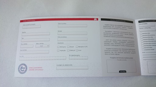 KSIĄŻKA NAPRAW ORAZ PRZEGLĄDÓW SERWISOWYCH 1szt.