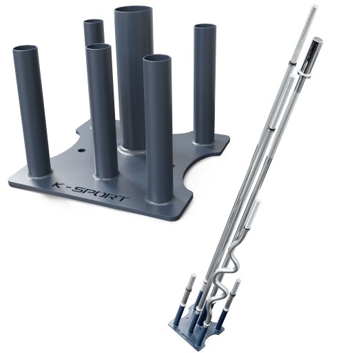 Wprowadź ład i porządek w swojej siłowni, dzięki stojakowi K-SPORT. Pięć rur o średnicy wewnętrznej 29 mm oraz jedna, o średnicy 52 mm pozwoli odłożyć aż sześć różnych gryfów.