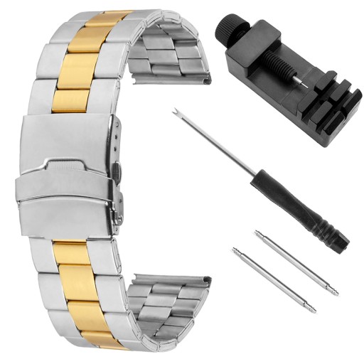 БРАСЛЕТ ДЛЯ ЧАСОВ – 18 ММ, СЕРЕБРО И ЗОЛОТАЯ СТАЛЬ