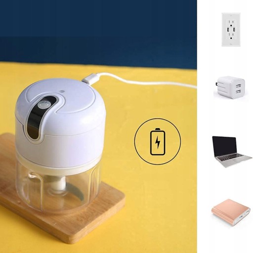 PRZENOŚNY MŁYNEK ELEKTRYCZNY Z AKUMULATOREM USB: Nasza kompaktowa i lekka elektryczna maszynka do mielenia mięsa jest wyposażona w długotrwały akumulator 1200 mAh. Rozdrabniacz elektryczny można w pełni naładować w ciągu 3-4 godzin.