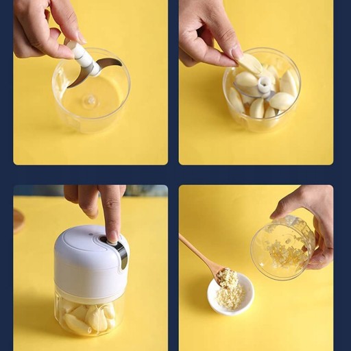 DWIE MISKI W JEDNYM OPAKOWANIU: Mini siekacz elektryczny to świetna pomoc dla każdego w kuchni. Nasz elektryczny rozdrabniacz ma dwie miski (250 ml i 100 ml), w których możesz siekać orzechy, imbir, czosnek, cebulę i inne warzywa.