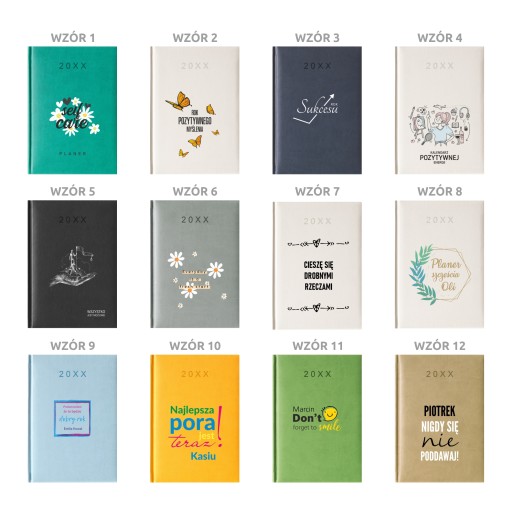 3. Wybierz wzór nadruku. Jeśli wybrany wzór nadruku nie będzie czytelny na danym kolorze okładki, zaproponujemy inny odcień oprawy.