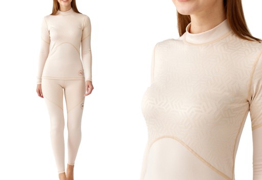 Komplet (koszulka i spodnie) szybkoschnącej damskiej bielizny termoaktywnej, wykonanej z najwyższej jakości komfortowej tkaniny, pomagającej utrzymać stałą temperaturę ciała. Posiada dodatkową ochronę antybakteryjną.