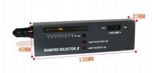 5. Uważnie obserwuj odbicie instrumentu. Jeśli zaświecą się pozostałe żółte diody, gdy jest 9 diod i rozlegnie się sygnał dźwiękowy, oznacza to, że badany jest prawdziwym diamentem. W przeciwieństwie do tego, jeśli świeci się mniej niż 9, a instrument nie emituje ostrego sygnału, oznacza to fałszywy diament lub podróbkę.